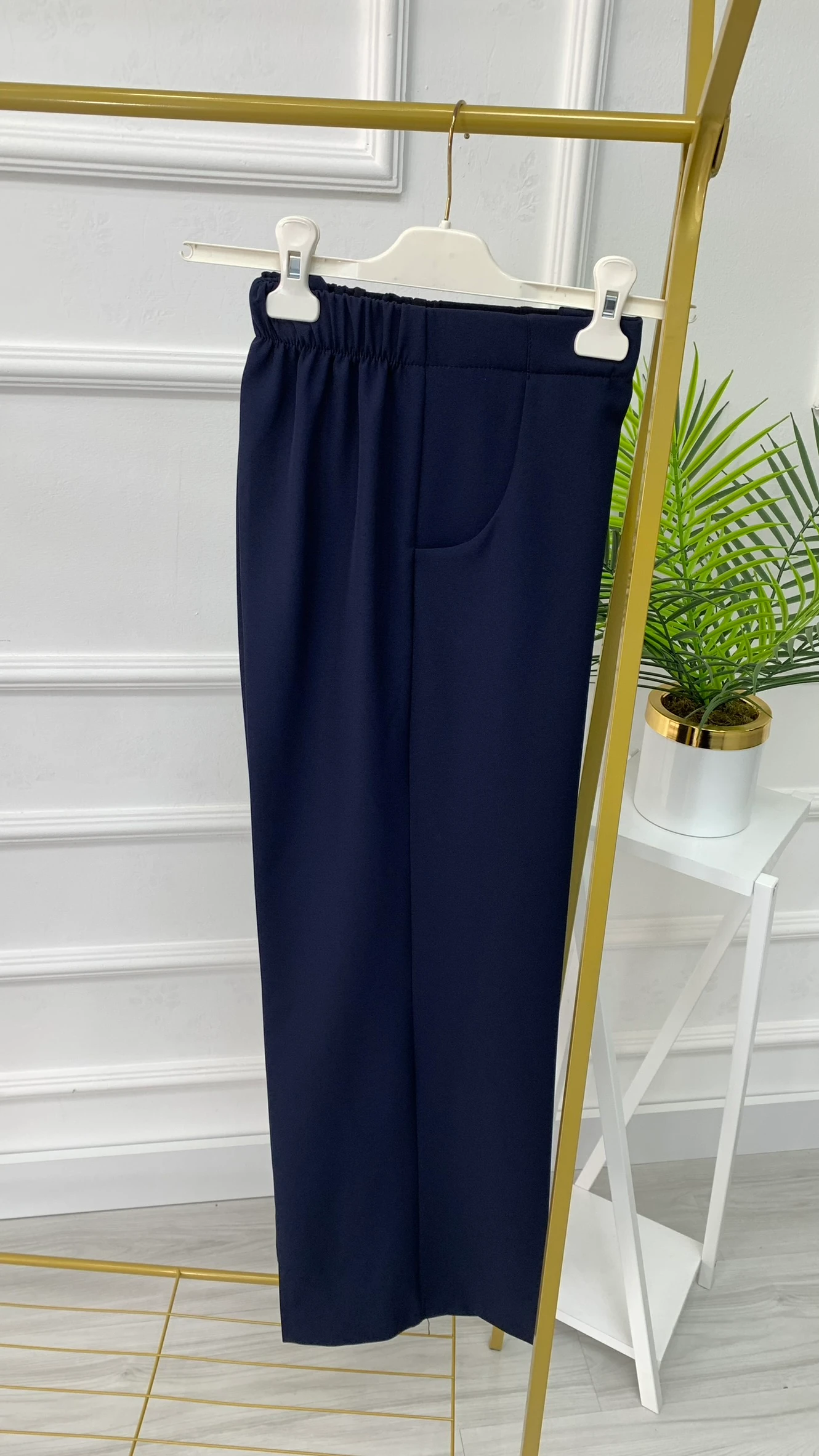 Famelin Beli Lastikli Bol Paça Bayan Pantolon 1570 - Lacivert